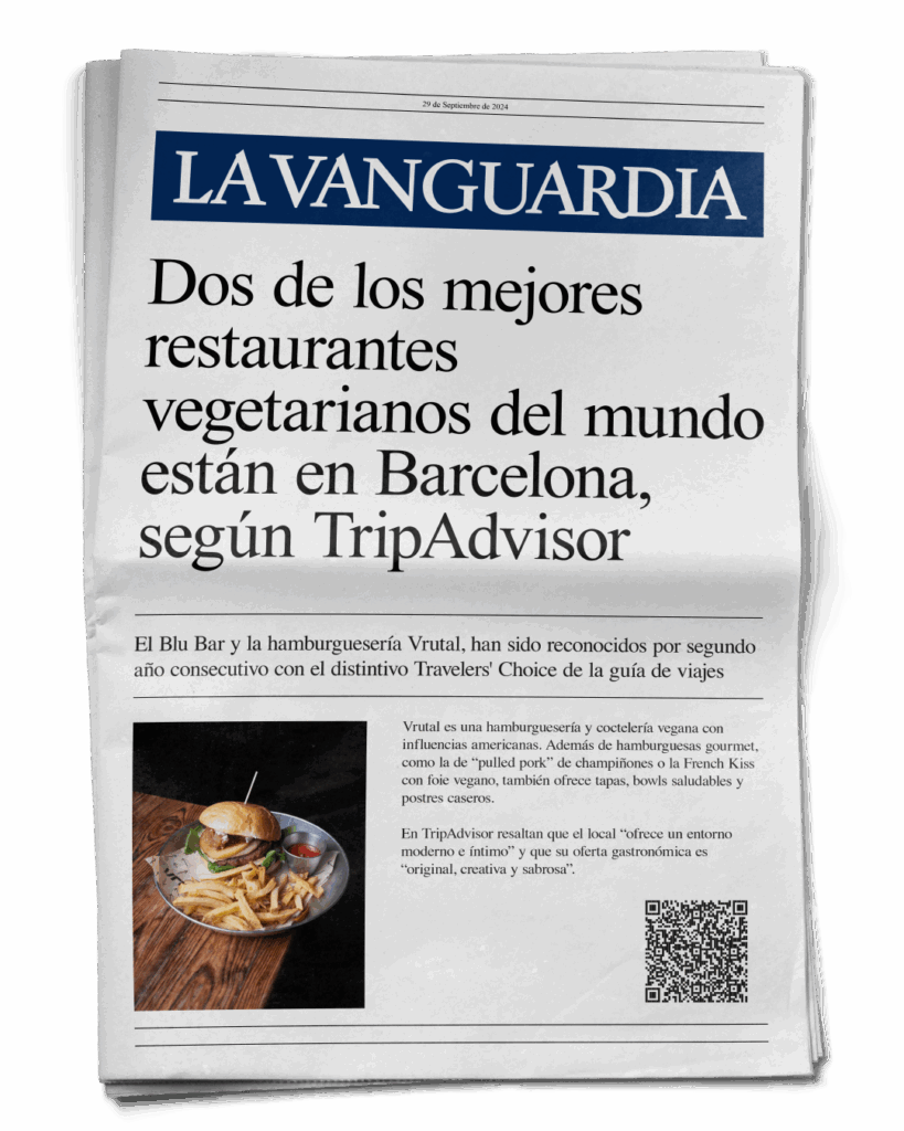 PRESS KIT Descarga aquí imágenes, información y material oficial de nuestros restaurantes Blu Vrutal Desoriente 26KG BELEAVERS EN LOS MEDIOS TimeoutEl segundo mejor restaurante vegano del mundo está en Barcelona Lee la noticia TimeoutLos mejores restaurantes y bares del Poblenou Lee la noticia La VanguardiaDos de los mejores restaurantes vegetarianos del mundo están en Barcelona, según TripAdvisor Lee la noticia Directoalpaladar.comCuatro restaurantes veganos que merece la pena visitar en Poblenou, el barrio de moda de Barcelona Lee la noticia Tot BarcelonaDos restaurants del Poblenou, entre els 25 millors del món segons Tripadvisor Lee la noticia TimeoutUna de las mejores hamburgueserías veganas del mundo abre en el centro de Barcelona Lee la noticia HAZTE BELEAVERCada vez que comas en el BLU, VRUTAL, DESORIENTE o 26KG acumulas un 10% del importe de tu cuenta para usar en tu próxima visita Formulario de registro